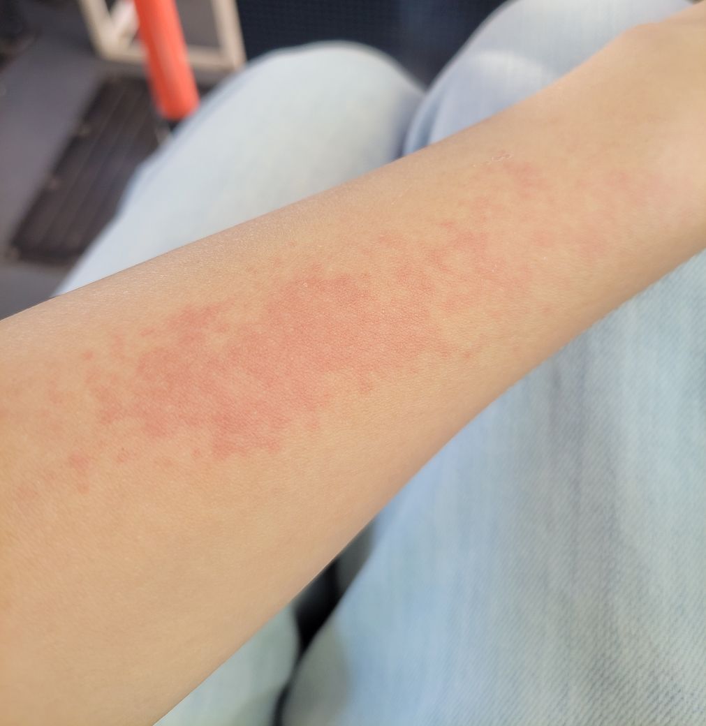 낮에는 안 그랬는데 화요일 점심에 딸기우유 삼각김밥 순살꼬치먹고 간식으로 레몬 아이스티랑 포도 아이스크림 먹고 저녁에 비빔면이랑 숙주나물 먹고 저녁에 맨날 먹었던 음식인데 저녁에 팔이 간지러워서 긁었는데 빨갛게 올라왔어요