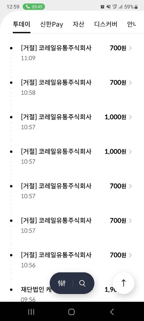 소액이라 그냥 넘어가려고 했는데 카드정지 후에도 12시 46분까지 20차례 넘게 거절되고 있었는데 결제를 시도했더라구요
