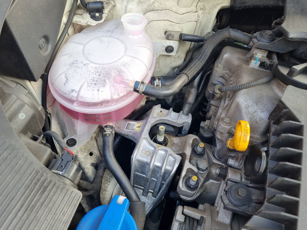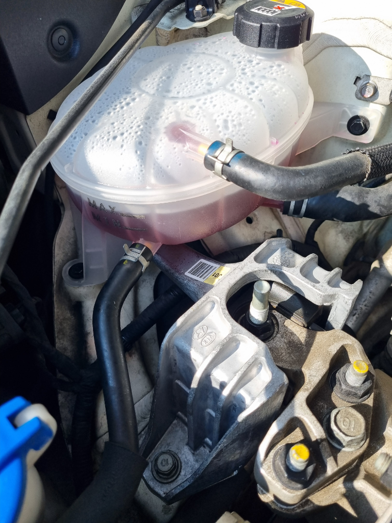 써모스탯은 기본적으로 78도~84도 개방하도록 설계되어있어서 보조통에도 부동액을 가득 채워주어 부동액라인 전체에 부동액이 제대로 순환하고 에어가 빠질 수 있도록 합니다.