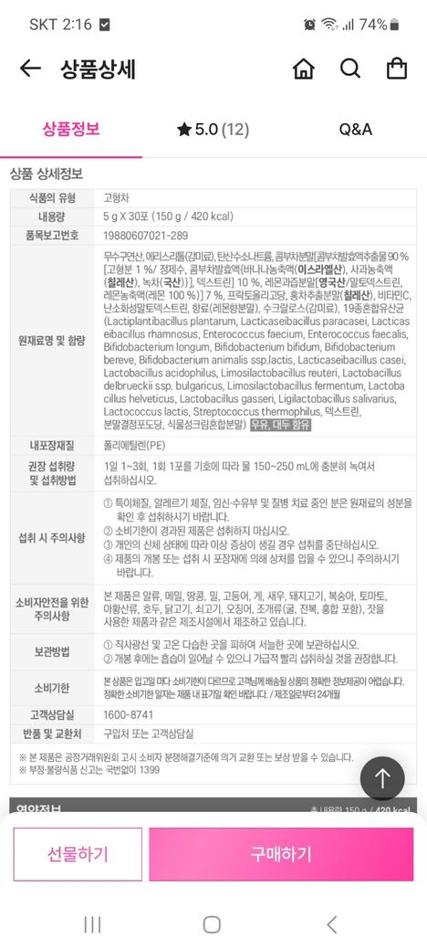 장 때문에 먹는거면 사진의 콤부차 제품은 안 먹는 게 낫겟죠