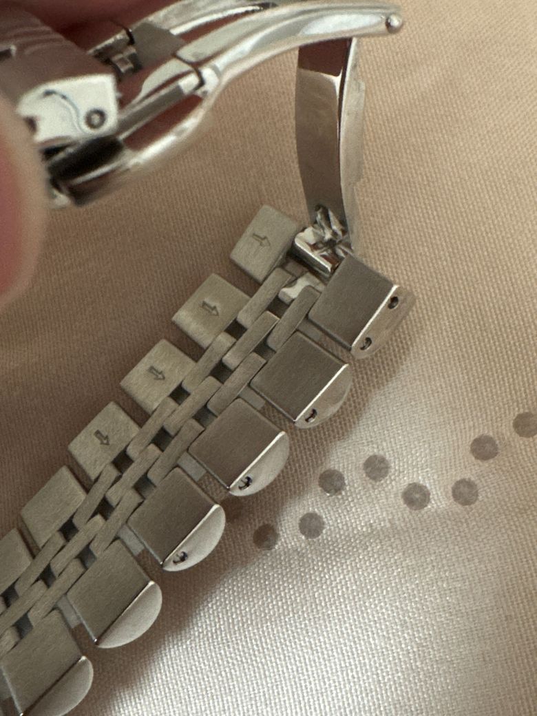시계줄 줄이는 방법 시계줄이 안 맞아서 줄이려고 하는데 화살표랑 동그란 구멍에 일자모양 홈이 있는데 구멍이 작고 일자 모양 홈도 많이 작습니다