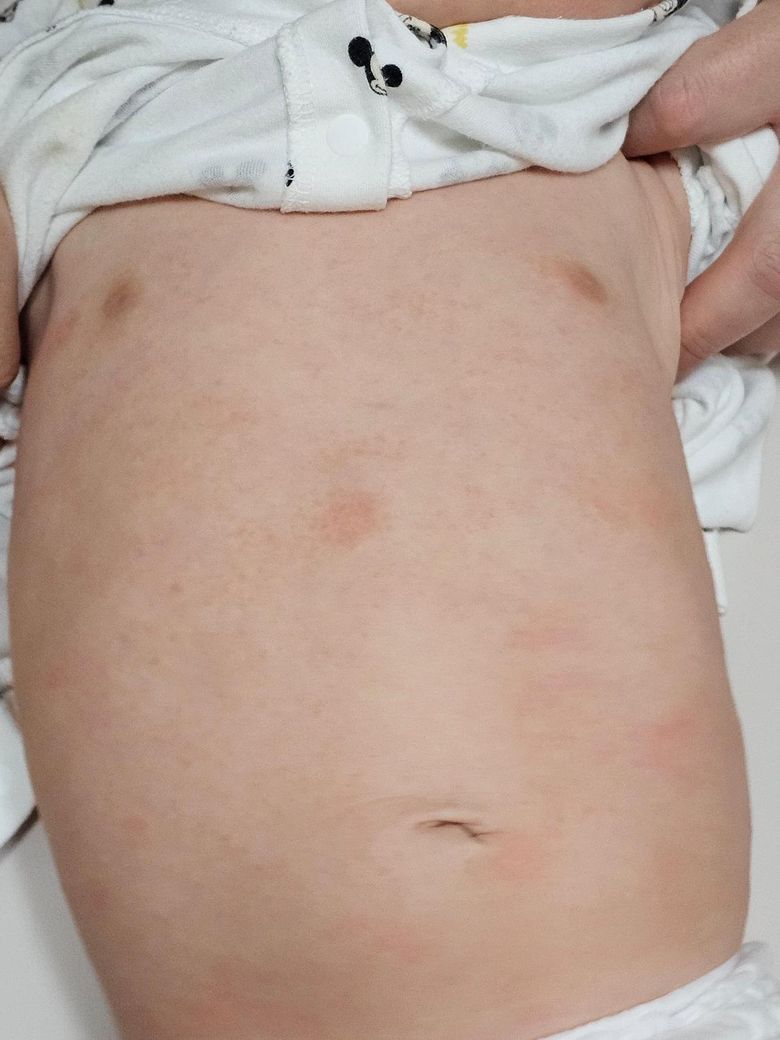 7개월 아기인데 갑자기 두드러기가 동전처럼 있고 좀 진해진것같아서요 동전처럼 오돌토돌한건 며칠됏어요