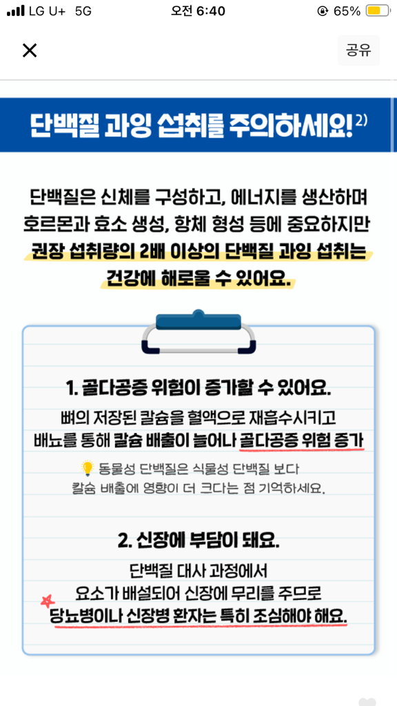 5. 지금 단백질 타서 드시는 것만 드셔도 하루 권장량은 거의 섭취하시는건데 계란 1알에다가 고기까지 드셔서 과다섭취 아닌지요?