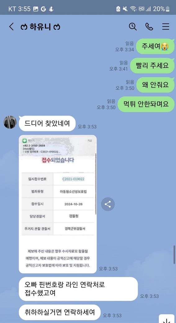 라인 자영 판다고해서 1만5천원주고 샀더니 민원접수 사진과 합의를 원하면 돈을달라하는데 어떻게해야 하고 대처방안을 물어봅니다
