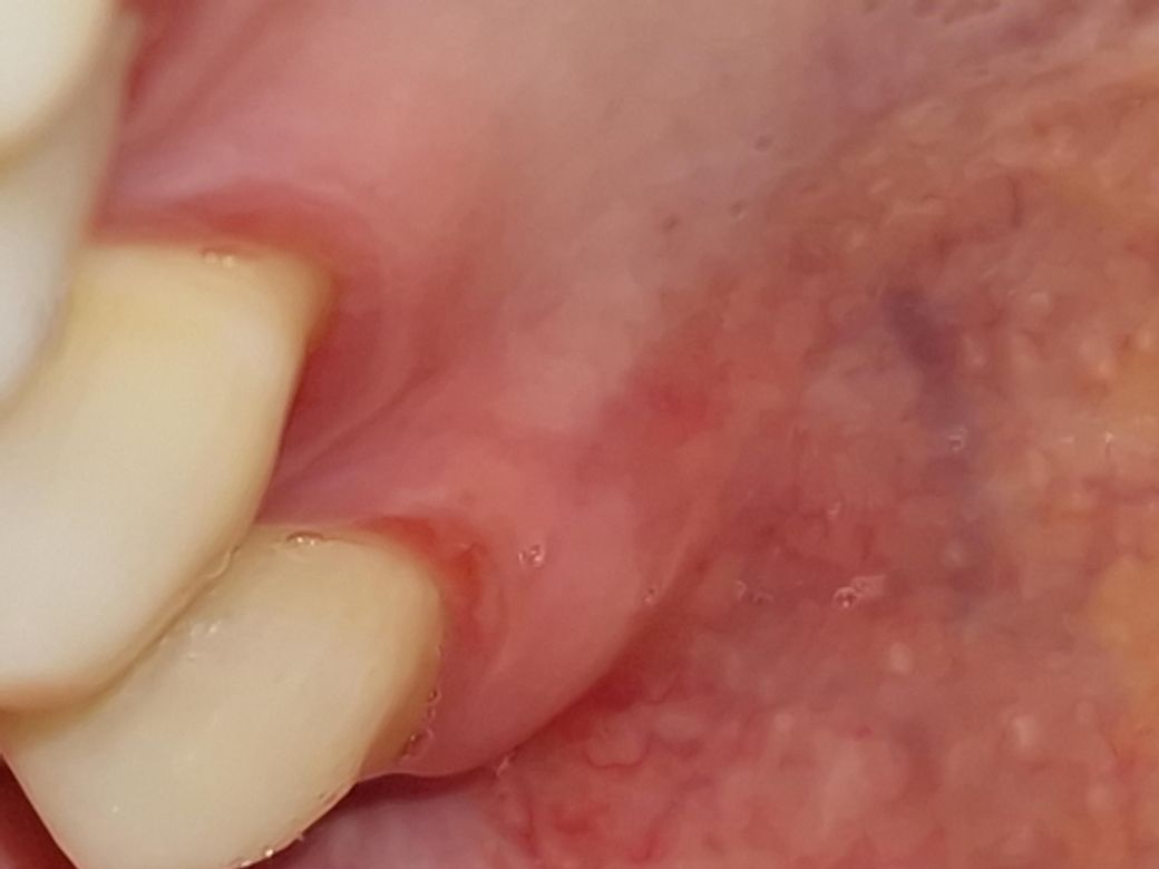 위쪽 어금니 안쪽 잇몸이 까진 것 처럼 혀로 만졌을때 덜렁거리고 따끔한 통증이 있어요.