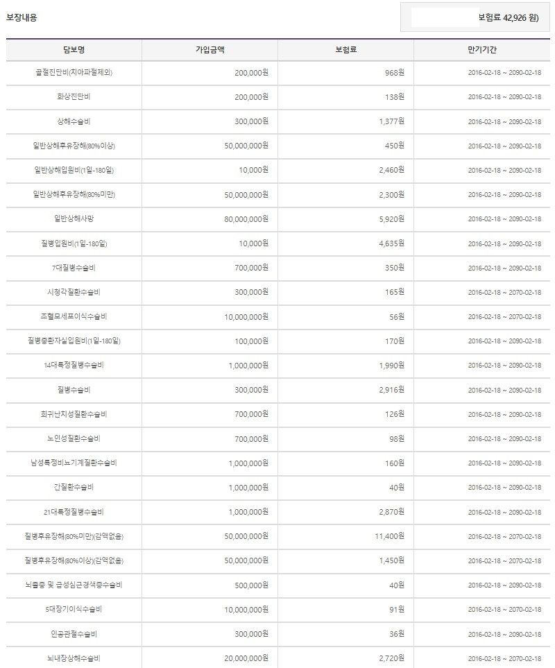 사실 정작 중요한 암진단금, 뇌혈관진단금, 허혈성심장질환 진단금, 같은 경우는 하나도 없네요..