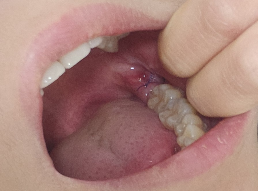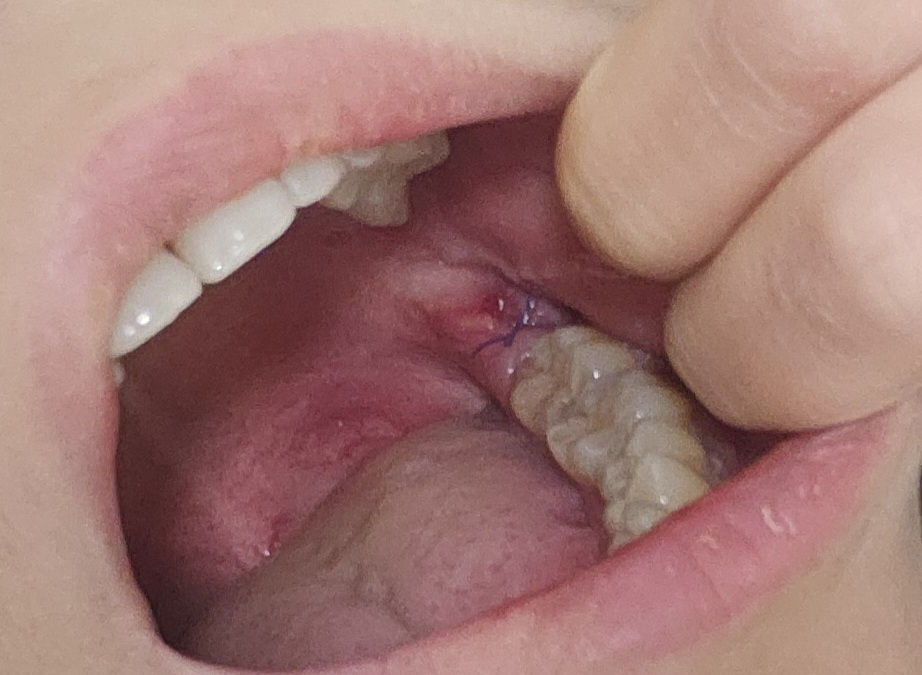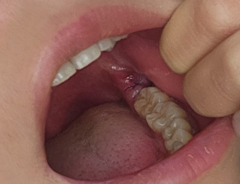 사진으로만 봤을 경우에는 발치한 부위에 잇몸이 잘 아물고 있는 것으로 보입니다. 발치한 부위가 아물기 위해서는 2주 정도의 시간이 걸리기 때문에 그 이전에는 해당 부위가 되지 않도록 하는 것이 좋습니다.
