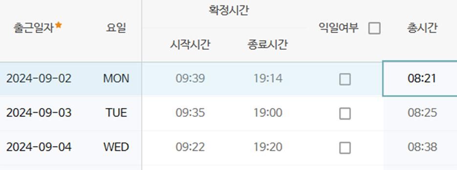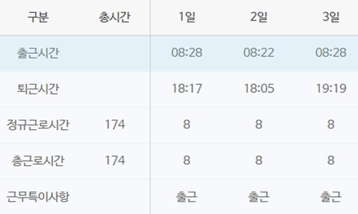 근로자가 본인의 총 근무시간에 대해 확인을 요청해왔습니다.