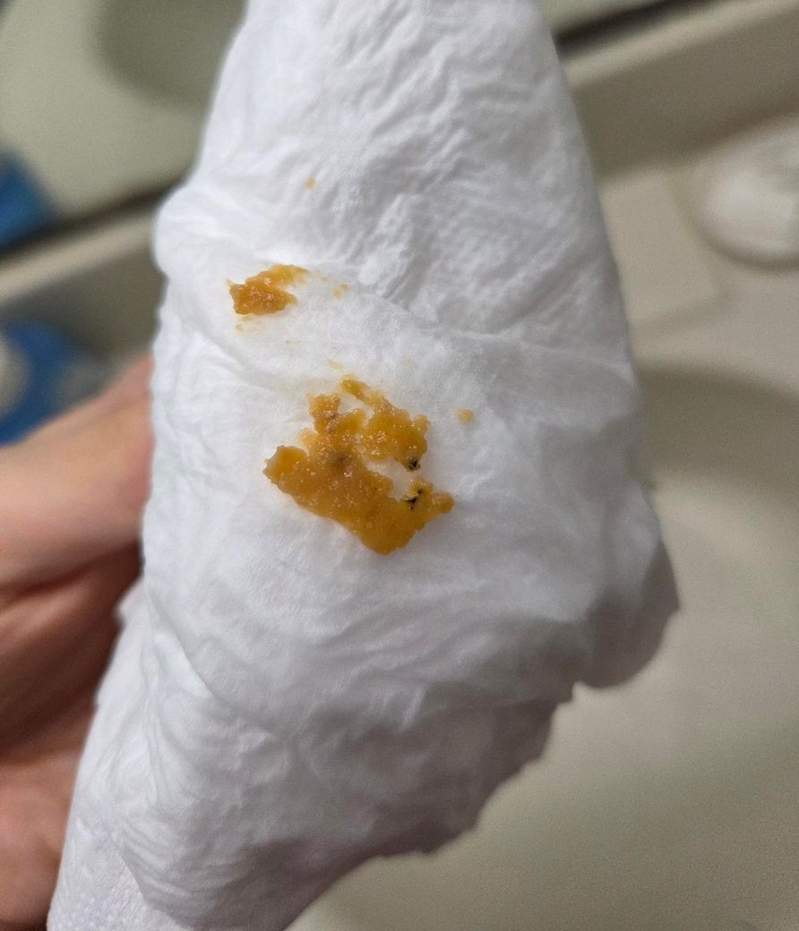 오늘 변을 보고 물을 내렸는데 사진에 보이는 것처럼 지방인지 기름인지 모를 정체 불명의 조각이 떠올라서 문의 드립니다. 저것의 냄세가 그리 심하지 않았습니다. (거의 없는 느낌)