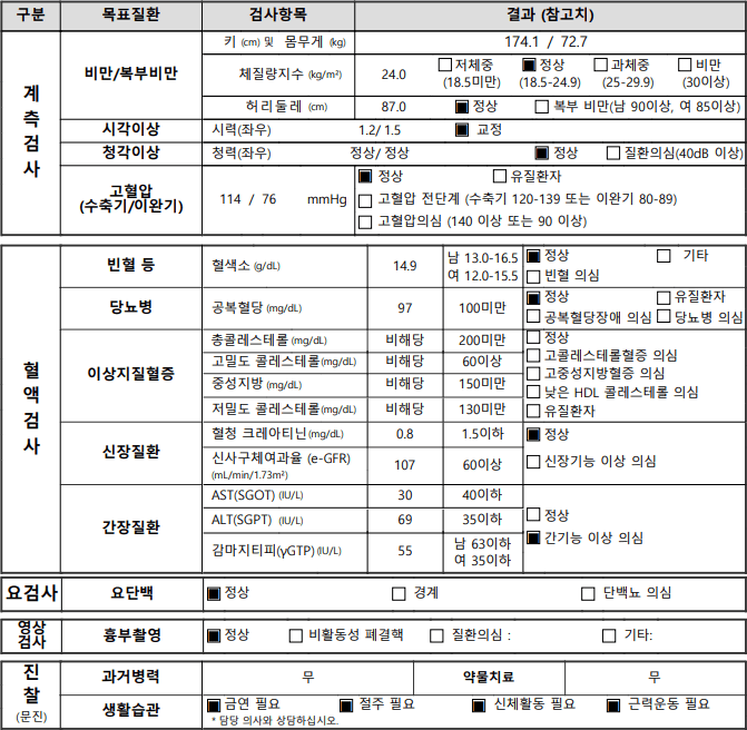 추가로 비만, 신장, 이상지질혈증 등등 다른 건 정상 입니다..