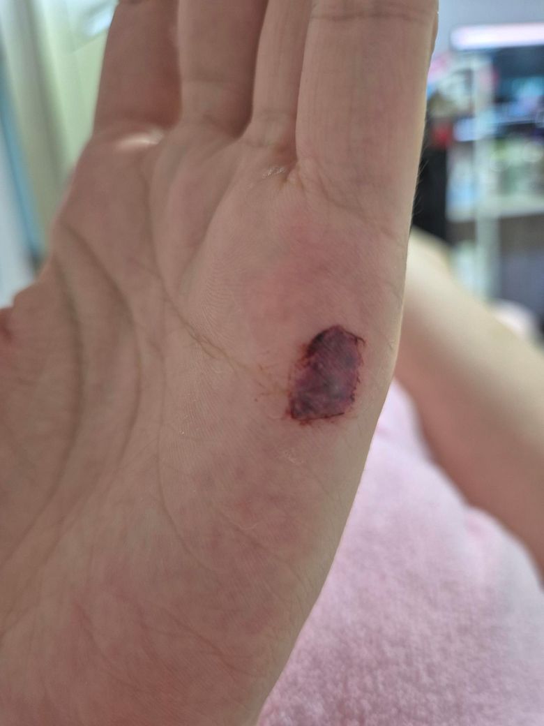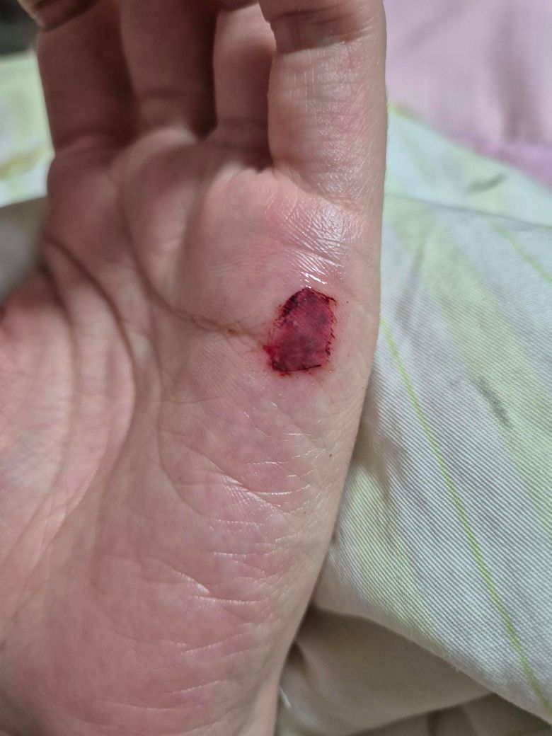 오늘 새벽에 화장실에서 넘어지면서 뭘 잡으려다가 손바닥 피나면서 피부가 한겹 벗겨졌었어요 물로씻고 피부다시덮고 후시딘만발르고 12시간정도 지난 상태에요 안에 피때문에 까맣게 변했는데 이대로 연고만 발라도 될까요 최대한 빨리나으려면 어떤조치가 필요할까요? 재생까진아니더라도 물 닿아도 되는시기까지 며칠걸릴까요?