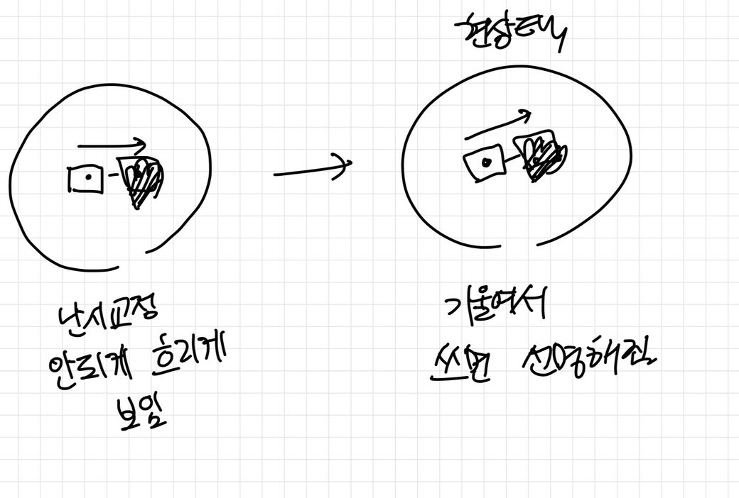 왼쪽눈이 시력이 떨어진것 같아서 안경원에 갔는데 도수를 높여도 난시교정이 안된다고 하더라구요원래 시력은 난시 -2.5 근시 -6 정도로 안좋습니다ㅜㅠ안과를 갔는데 망막 시신경 이상없고 백내장도 아니라고 하더라구요 원축각막도 비슷한 증상이라던데 안과에서 별말 없었구….인공눈뭉 넣으면 선명해졌다가 깜빡여서 흘러내리면 다시 안보여요근데 집에서 이상해서 이거저거 해보다가 안경을 아래 그림처럼 쓰면 어느정도 선명하게 보이는데 이거 눈의 난시축이랑 안경 축랑 달라서 그런건가요?