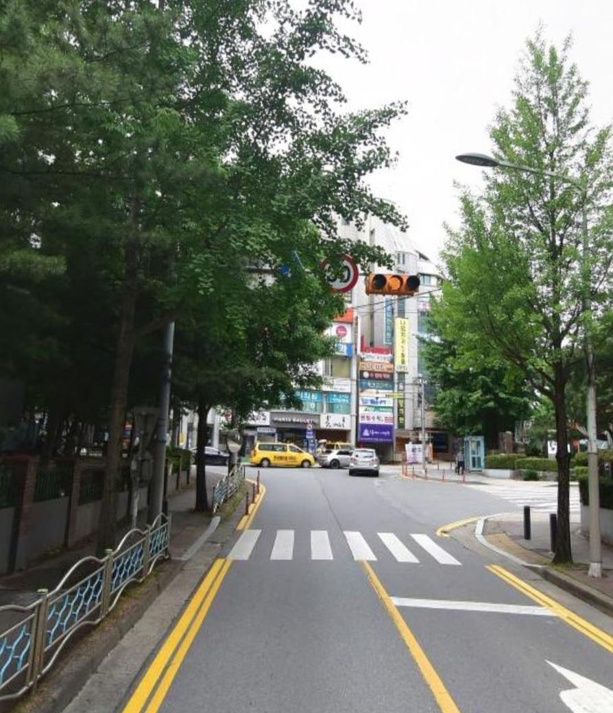 위 사진에서 왼쪽아래 흰부분은 상대차 그옆에 긴차는제차 그옆은 반대방향에서 오는 차 입니다. 좁은길은 아닙니다.