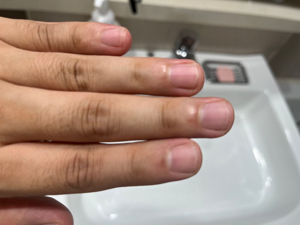 올리신 사진들을 토대로 보았을 때에는 딱히 손톱 부위가 보라색으로 보이거나 하지 않아 보입니다. 분홍색 양상을 띄고 있으며, 딱히 문제가 있을 것이라고 볼만한 부분이 크게 있어 보이거나 하지는 않아 보입니다. 사진들만 보았을 때에는 문제가 있어 보이지 않습니다.