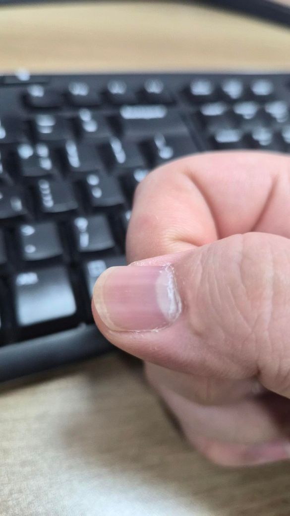 어두운색으로 세로줄이 오른손 엄지 손톱에 일자로 그어져 있습니다 오른손 엄지손톱만 그렇구요 오늘 아침에 발견했습니다!