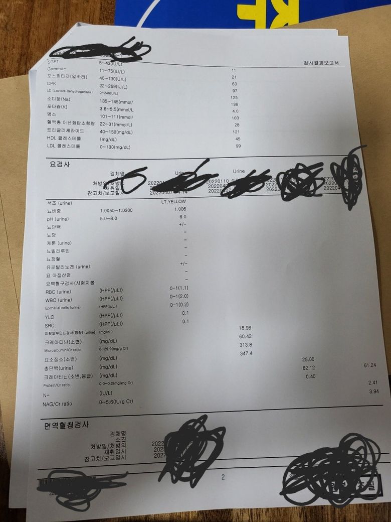 단백뇨 추적검사 받고 왔습니다. 결과지 내용은 어떤 상황인가요?