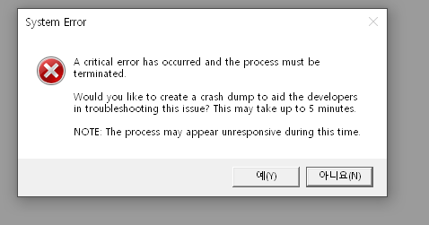 화면이 나오는데 픽 완료하고 이제 인게임 화면으로 넘어갈떄 검은화면으로 화면이 멈추고 에러문구도 같이 뜨면서 게임이 안됩니다