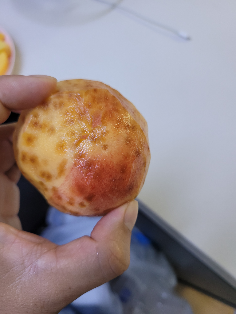 안녕하세요. 핫한고라니141입니다. 복숭아 사진을 보니 정상 복숭아가 아닌 문제가 있는 복숭아 같습니다. 바로 폐기처리하심이 좋을거 같습니다.
