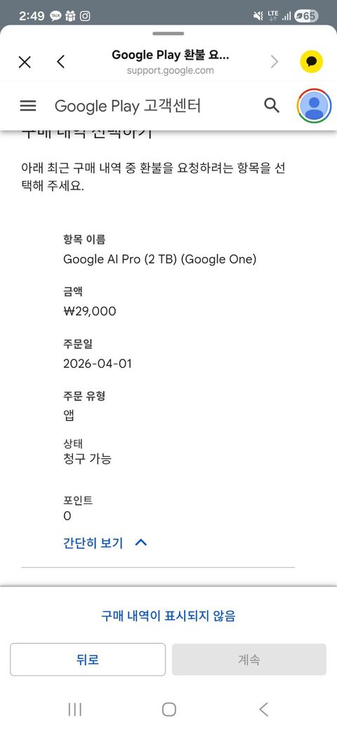 사진처럼 오늘 29000원이 결제가 되었는데 환불하려고 보니 선택이 안되서 다음창으로 안넘어가네요... 어떻게 해결해야하나요 ㅠ