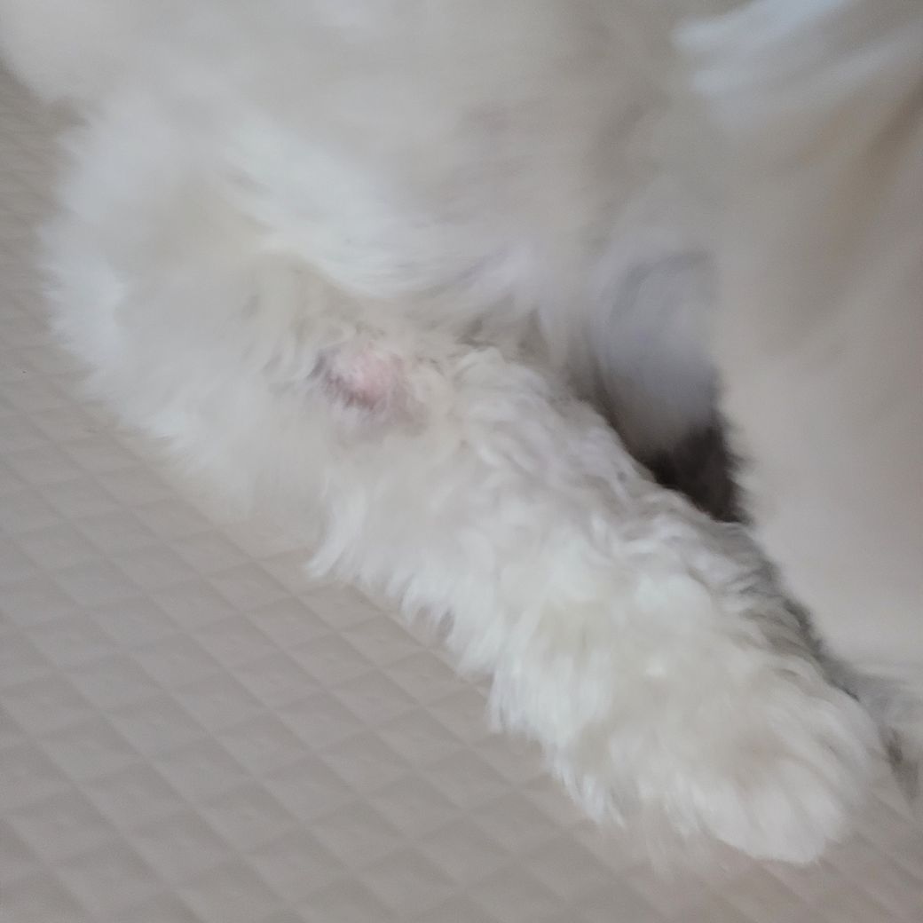 사진만으로는 알 수 없고 흰털의 품종이라면 white shaking dog syndrome이라고 불리우는 뇌신경 질환의 가능성 등 해당 피부 이외의 원격이상 가능성도 같이 고려해야 합니다.