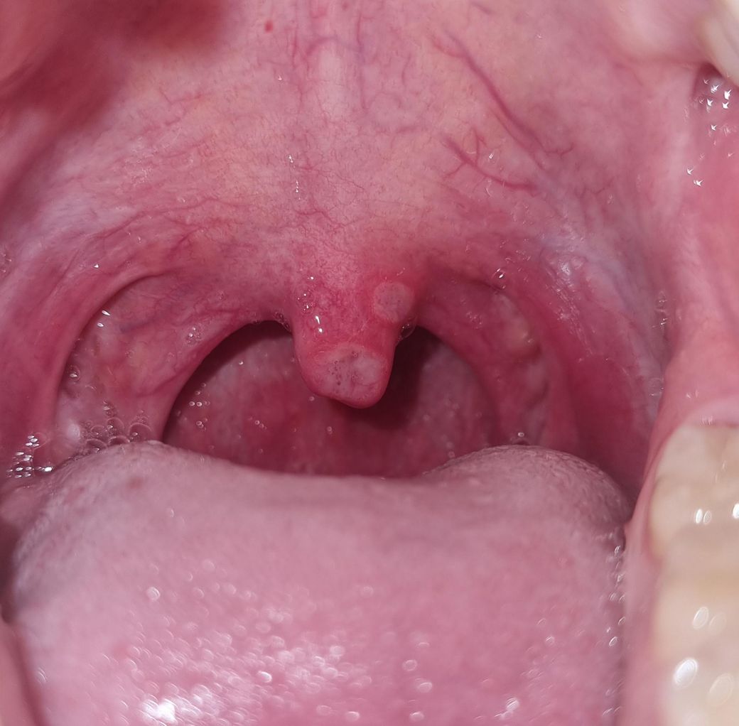 사진과 경과를 보면 일반적인 입술·볼 안쪽 구내염보다는 바이러스성 구강·인두염 양상에 더 가깝습니다. A형 독감 이후 면역 저하 상태에서 발생한 아프타성 궤양 또는 바이러스성 궤양이 목젖과 인두까지 퍼진 경우로 보이며, 크기가 크고 침 삼키기 어려울 정도의 통증이 동반되는 것도 설명이 됩니다. 겉으로 하얗게 보이는 것은 고름이 아니라 궤양 표면의 위막인 경우가 대부분입니다.