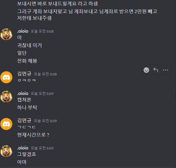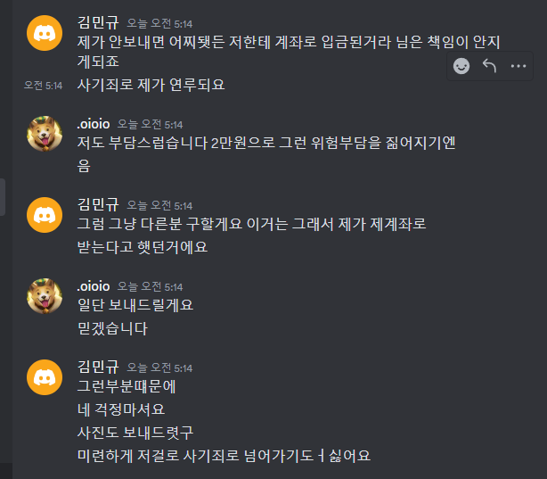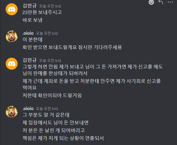 구매자는 어서 돈을 입금해달라, 그렇지 않으면 경찰서에 가겠다 하였고, 학생 신분인 저는 경찰이 무서워 일단