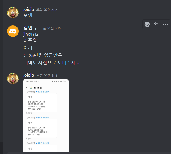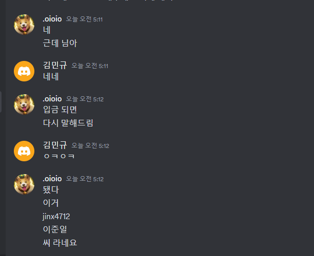 게임 닉네임 및 태그, 그리고 계좌번호와 이름 정도입니다 이 이후로 구매자와 저는 매우 난처한 상황에 빠졌습니다