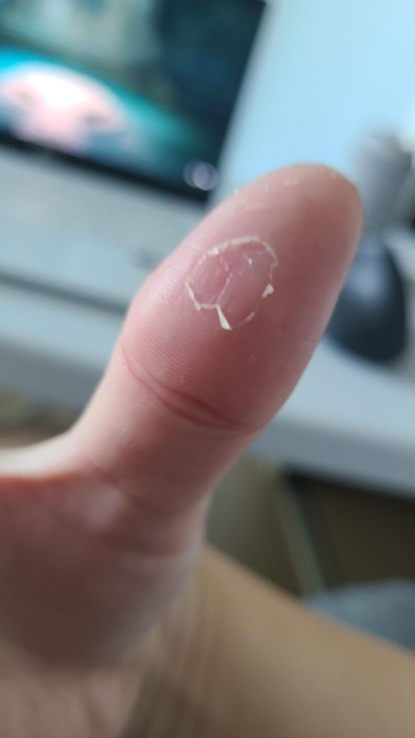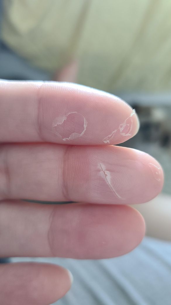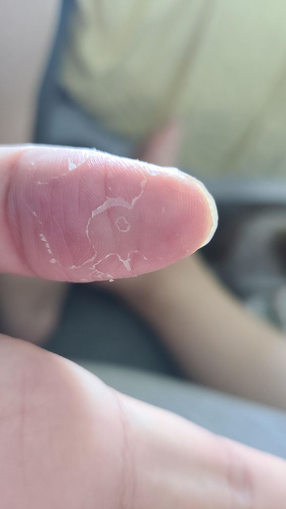 피부소견은 피부과 전문의가 직접 진료를 하여야 정확한 진료 및 그에 맞는 처치가 가능합니다. 말씀하신 상황만으로는 특정한 질병을 우선적으로 의심하기 어렵습니다만, 사진만 보았을 때 가장 일차적으로 의심될만한 것은 손가락 무좀이나 습진입니다.