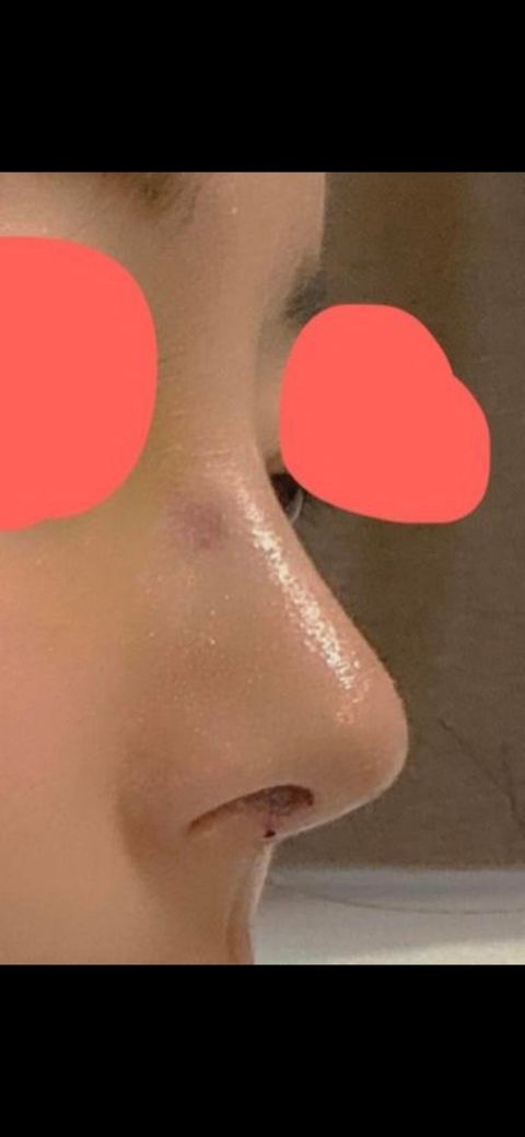사진 보니까 콧등 중간 부위에 선형으로 꺼진 소견이 보입니다. 5년이면 변형이 생길 수 있는 충분한 시간이고, 몇 가지 가능성이 있습니다.