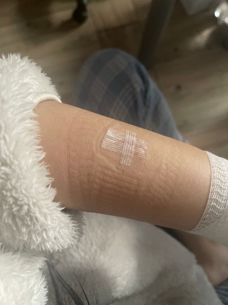 3일차인데 그냥 놔두는게 낫을까요? 추가로 스테리스트립받았는데 갈아야할까요? 손목쪽에는 아직 확인을 안해봤습니다 피는 이제 안나는데요