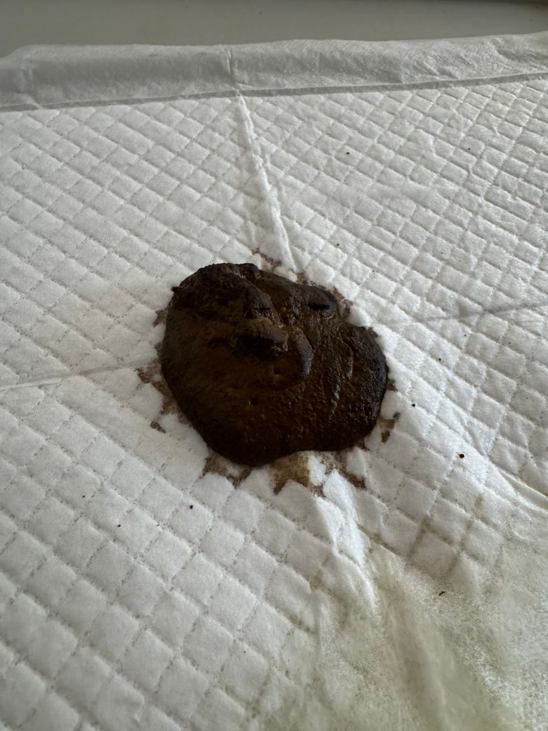 흑변 양상에 해당하는것으로 보이며 https://diamed.tistory.com/445 여러 원인이 있을 수 있는데, 일부 원인은 사망에 이르릅니다. 동물병원에 바로 데려가시기 바랍니다.