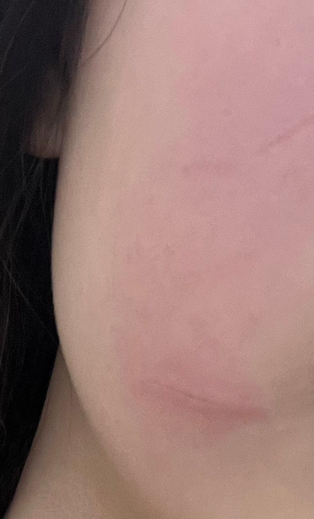 어떻게해야할까요..제발 흉 안졌으면 좋겠는데ㅠㅠㅠㅠ밴드 붙여야 할까요?ㅠㅠㅠ(사진 잘라서 그렇지 얼굴 맞아요😢)