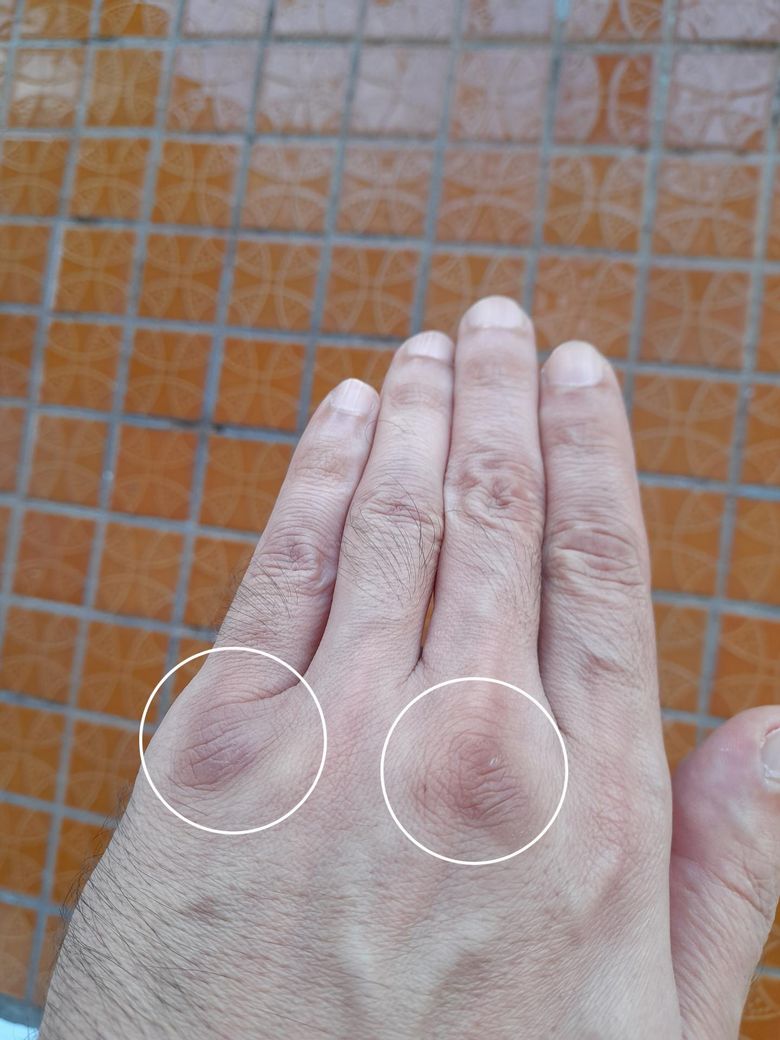 1개월 전 손관절 부위가 붉은색의 양상이었다가 사진과 같은 상태가 되었다면 피부염이 발생하였고 이후 착색과 태선화가 발생한 것으로 판단할 수 있습니다. 국소 피부염을 치료하지 않을 경우 피부 세포의 멜라닌 분비가 증가하여 착색이 나타나게 되며 반복되는 염증 반응으로 인해 피부가 두꺼워지는 태선화 과정이 나타나게 됩니다. 국소 스테로이드 등과 같은 약물 치료가 필요하므로 피부과 내원하여 진료를 보시는 것을 권해드립니다.