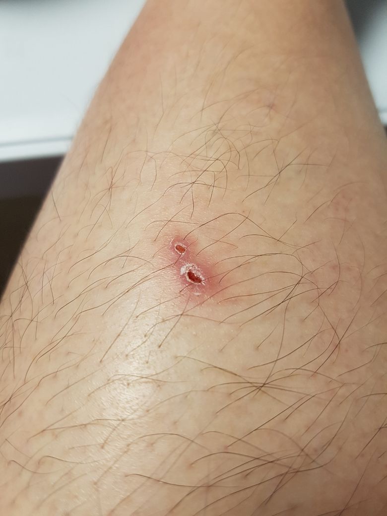 왼쪽 정강이에 발생한 가벼운 상처로 내과적인 질환을 의심할 수 없습니다. 사진의 소견을 통해서 내과적 질환을 의심할 것이 없습니다.