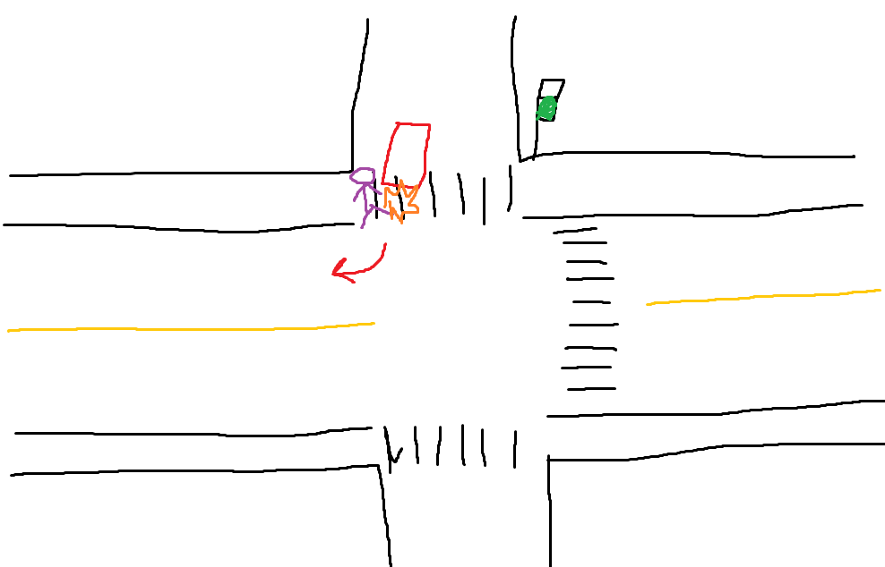 그리고 저 사고는 우회전하고 바로 나오는 횡단 보도에서 보행자가 없으면 그냥 갈 수 있는 곳이 아니라 보행자 신호에는 지나갈 수 없는 횡단 보도이므로 신호 위반에 보행자 보호 의무 위반으로 형사 처벌 대상입니다.
