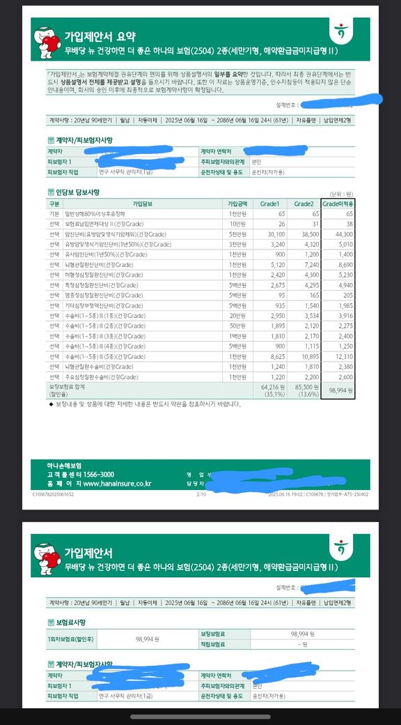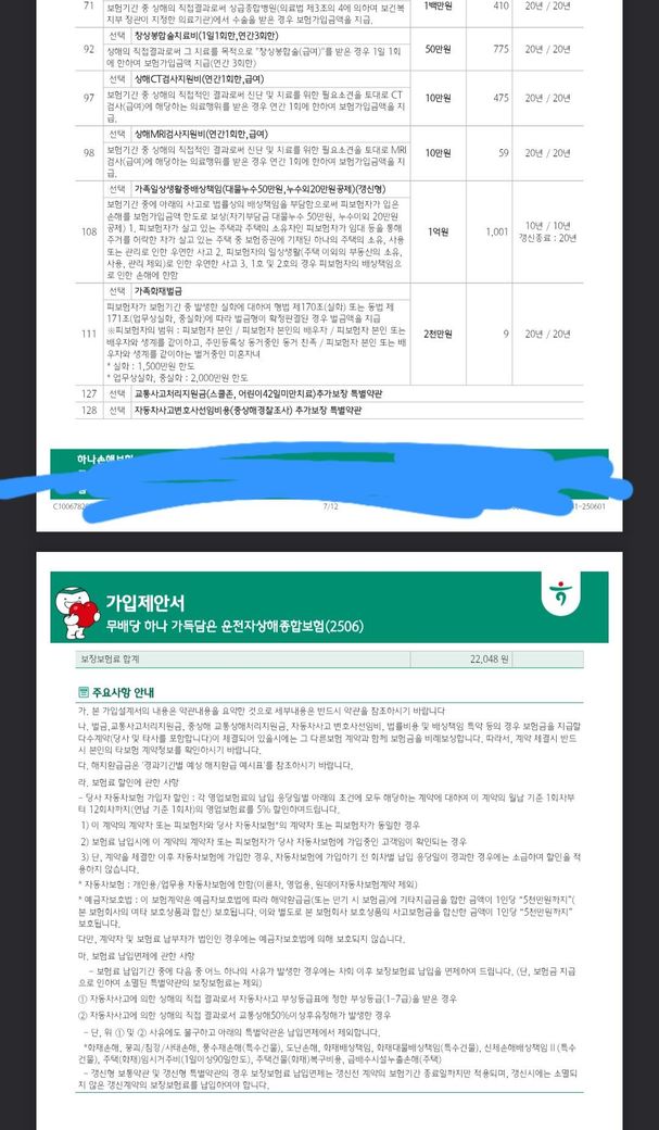 기존 가입된 보험료가 비싸서(16만원) 해지후 새로 가입할 예정인데, 해당 특약 괜찮나요? 건강검진 점수 할인 적용해서 85,500원 + 22,048원 입니다.