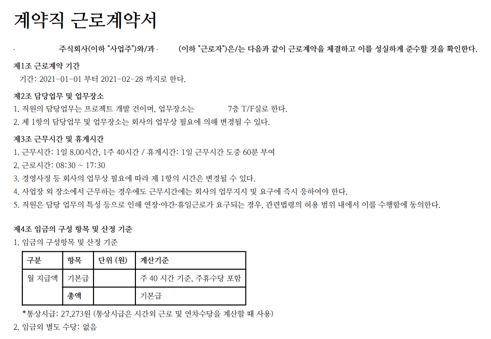 해당 계약서 외에 근로계약서 판단기준을 아래에 공유드리오니 참고해주시기 바랍니다.