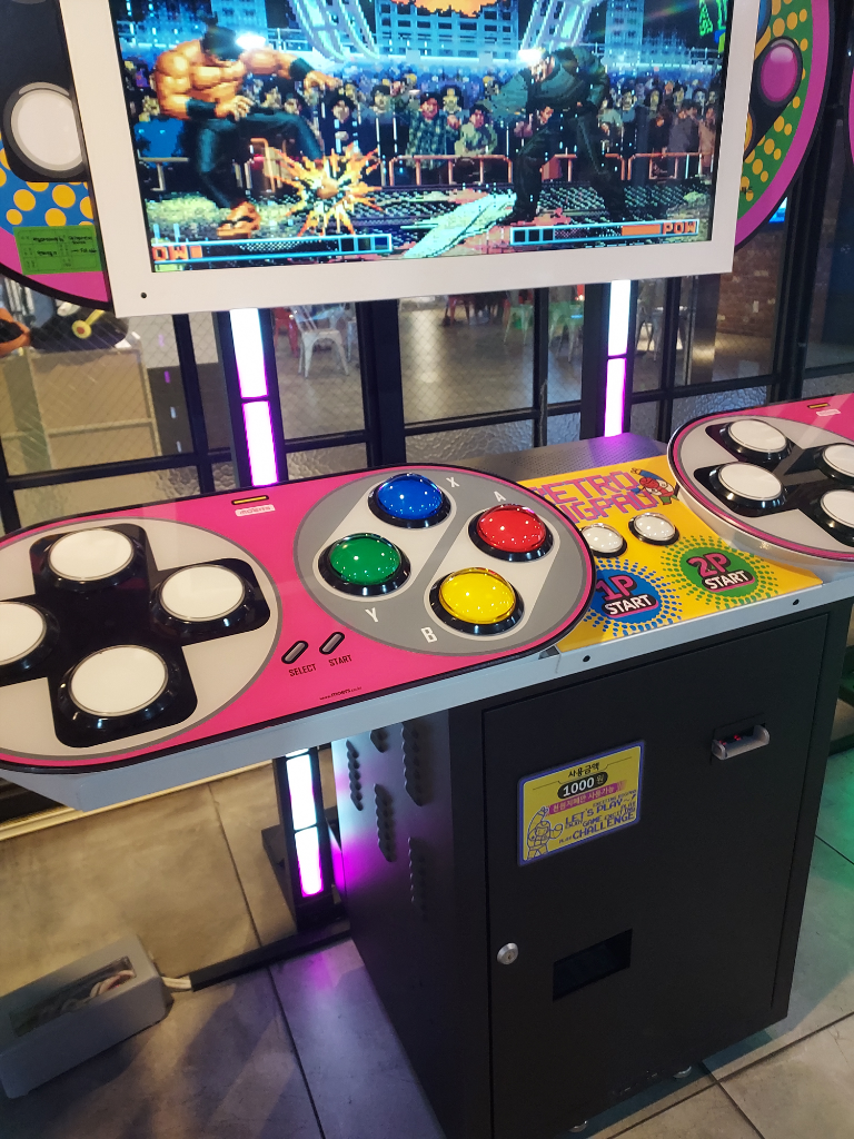 오랜만 오락실 와는던 킹오파 버튼이 장난 아닌게 큰것이 저런게 크게 하면 게임 하기 펀한가 ? 아니 불편한가 왜 저런게 큰 버튼으로 하나요?