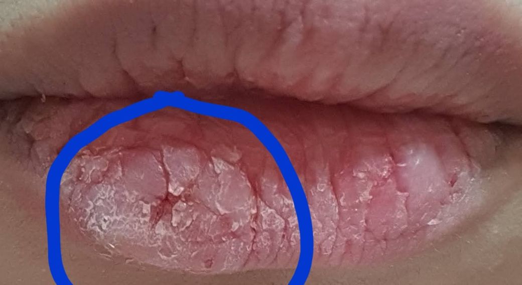 단순 구순염으로 보이며 각질이 단단한 부위를 잘 보습을 하시면 관리가 잘 된다는 가정 하에