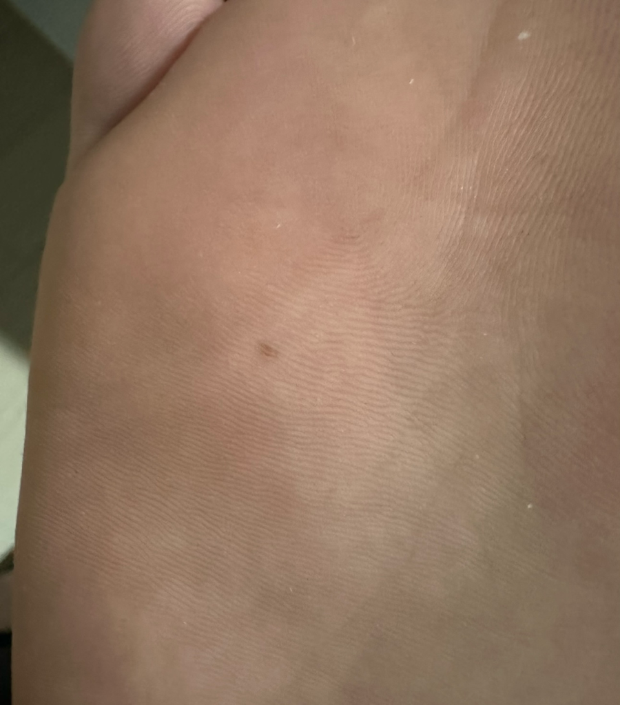병변이 작아서 정확한 판단은 어렵지만 사마귀보다는 점일 가능성이 높을 것으로 판단됩니다. 발바닥이라면 별로 신경쓰지 마시고 지켜 보시지요.