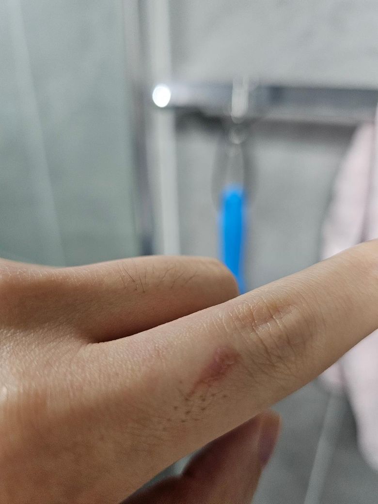 기름이 튀어서 손가락 화상 입은것 같습니다