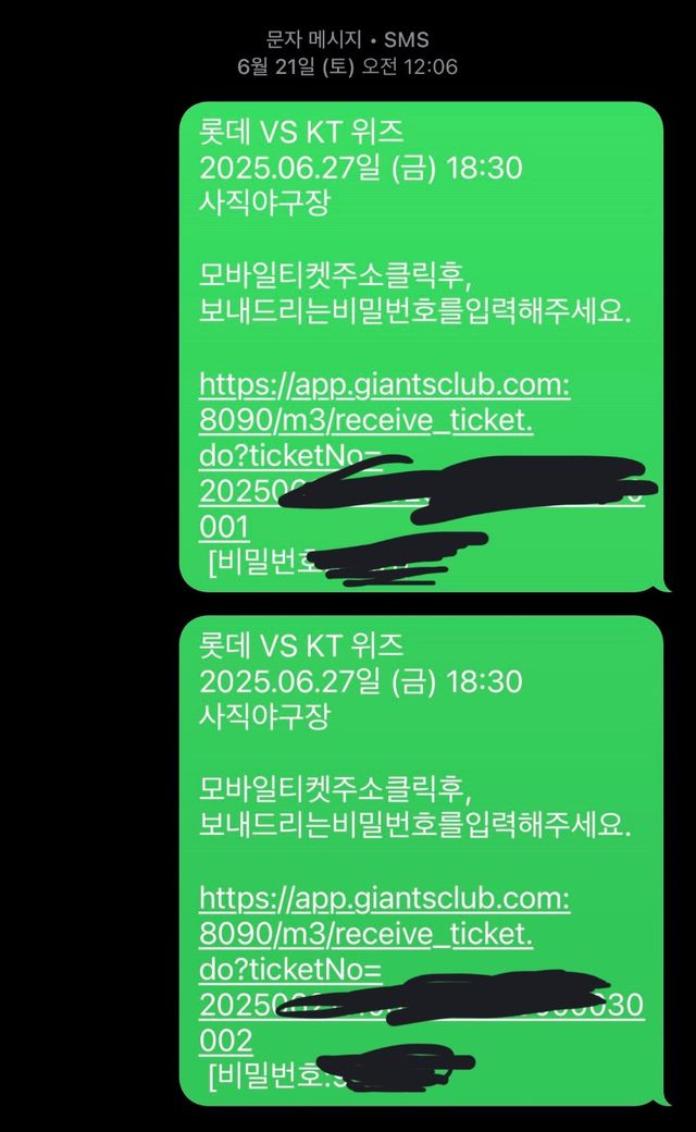 티켓을 문자로 보내준 6/21일에 문자 맨 위에 경기날짜와 요일까지 나와있는데 왜 확인하고나서 바로 날짜에 이상이 있다고 말 안하고 6/27경기가 끝나고난 오늘 말한건지 이해가 안가는데요