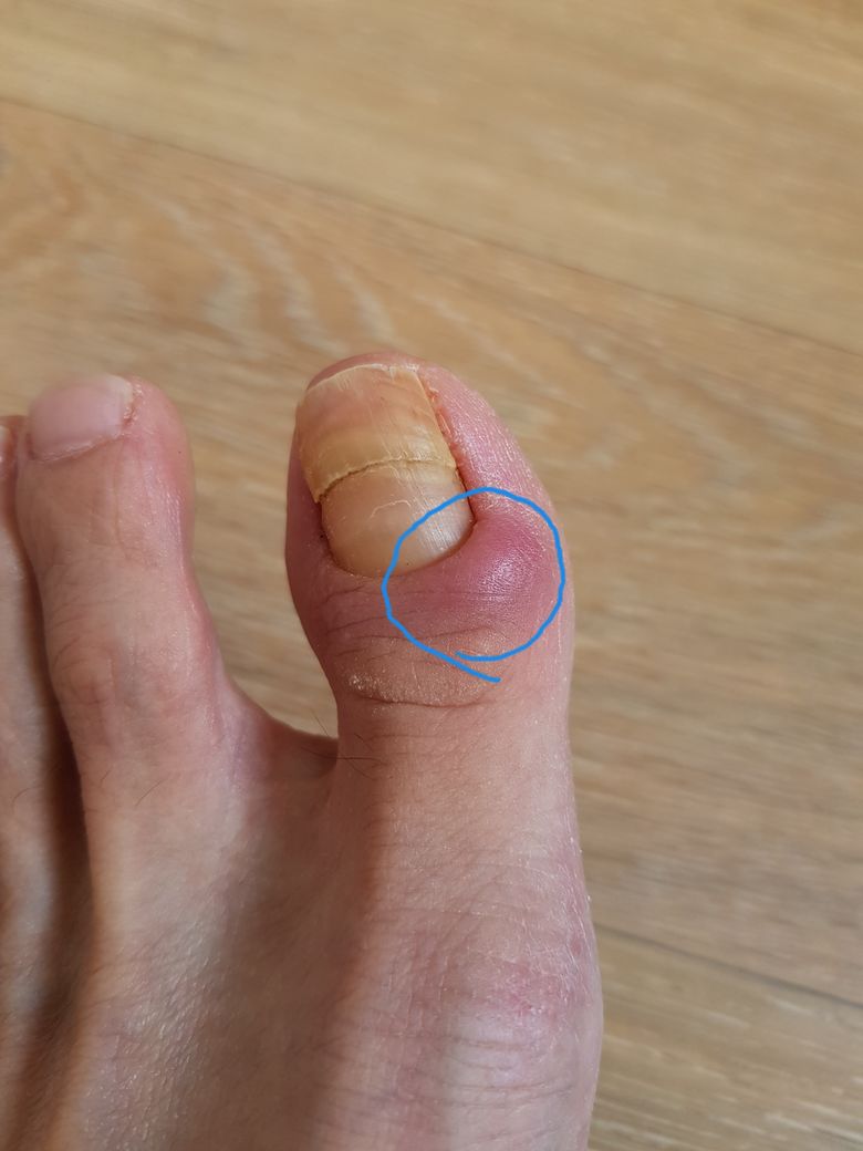 엄지 발톱 아래 통증+부음. 어떻게 해야 할까요?