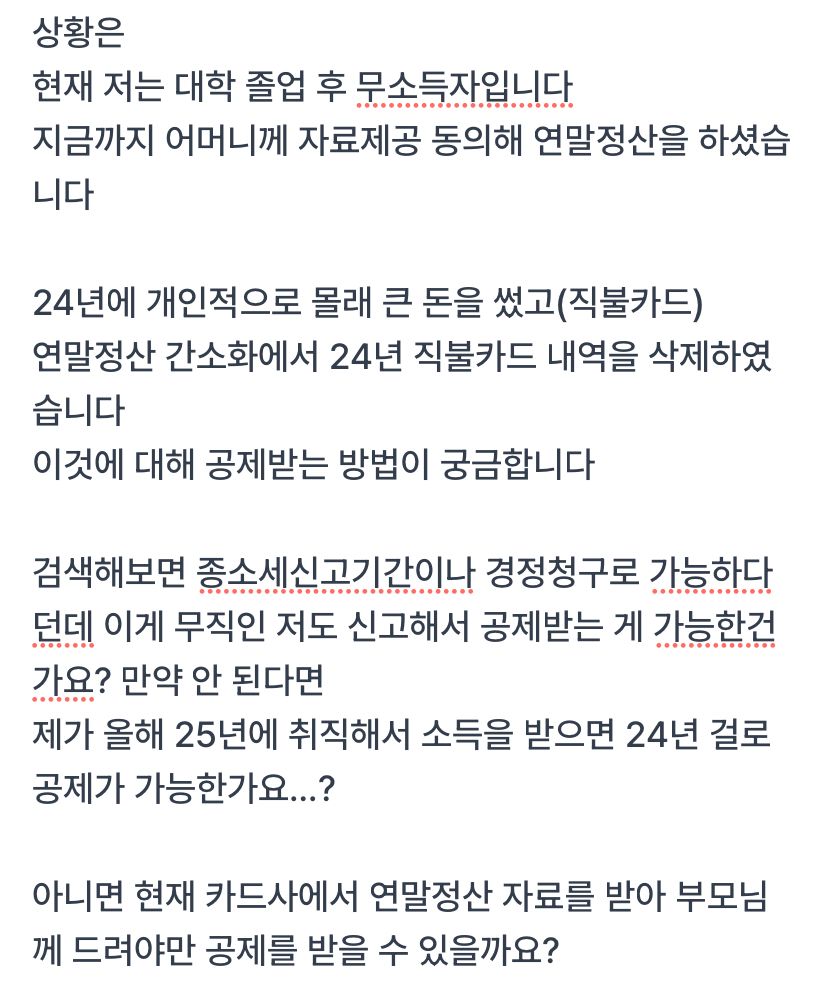 간단하게는 연말정산 부모님이하셔도 제가 종소세.경정청구 제가 가능할까요? 뭐 5년동안 된다 뭐라고 하는데 잘 모르겠어서요..