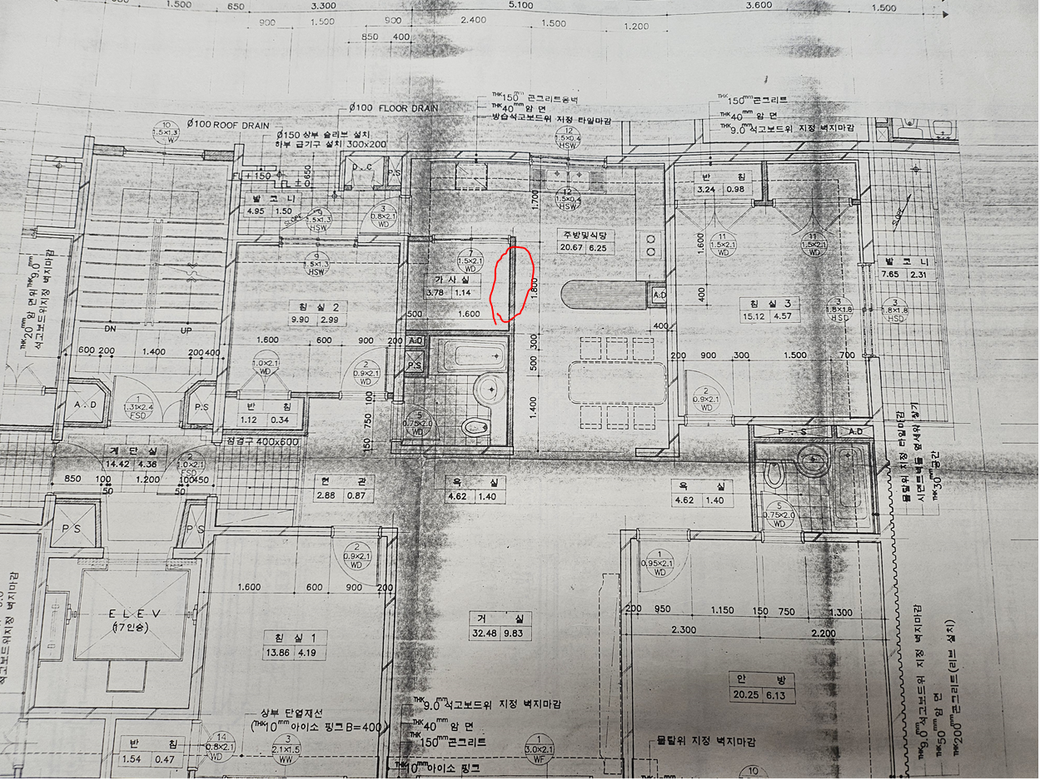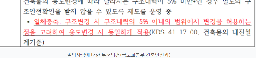 구조안전확인서에서 구조내력의 5%이하의 범위내에서 변경은 구조안전확인서 미제출도 허용한다는데요 저희 도면도 사진에 보시면 전용면적은 141제곱정도에 빨간동그라미 부분이 1.8m 가량의 주방가벽입니다. 이부분의 다제거도 아니고 1m정도제거하려하는데 5%이하의 계산을 어떻게 해야할지 궁금합니다
