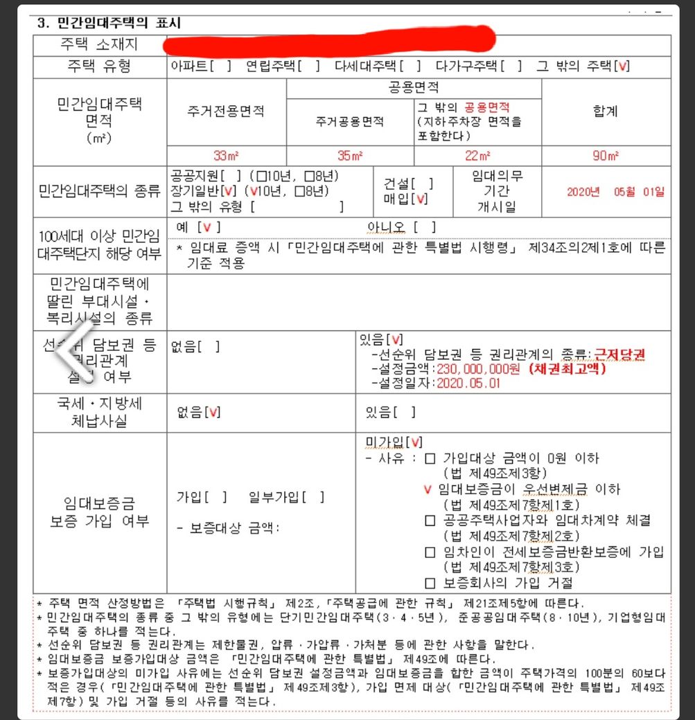 단독주택이나 다가구주택이라면 전용면적이 대장에 없어서 임의로 적습니다.