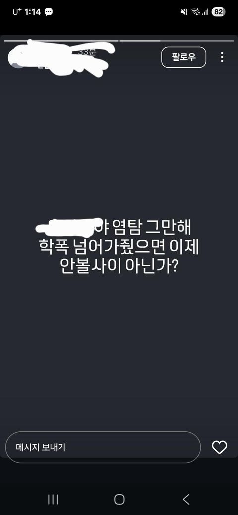 친구가 갑자기 내실명 거론을 하고 제가 학교폭력을 넘어갔다. 염탐 하지마라고하는데 이거 고소가능한가요? 저는 상당히 기분이 나쁘네요친구에 팔로우수도 600명이 넘어갑니다 공개계정입니다.
