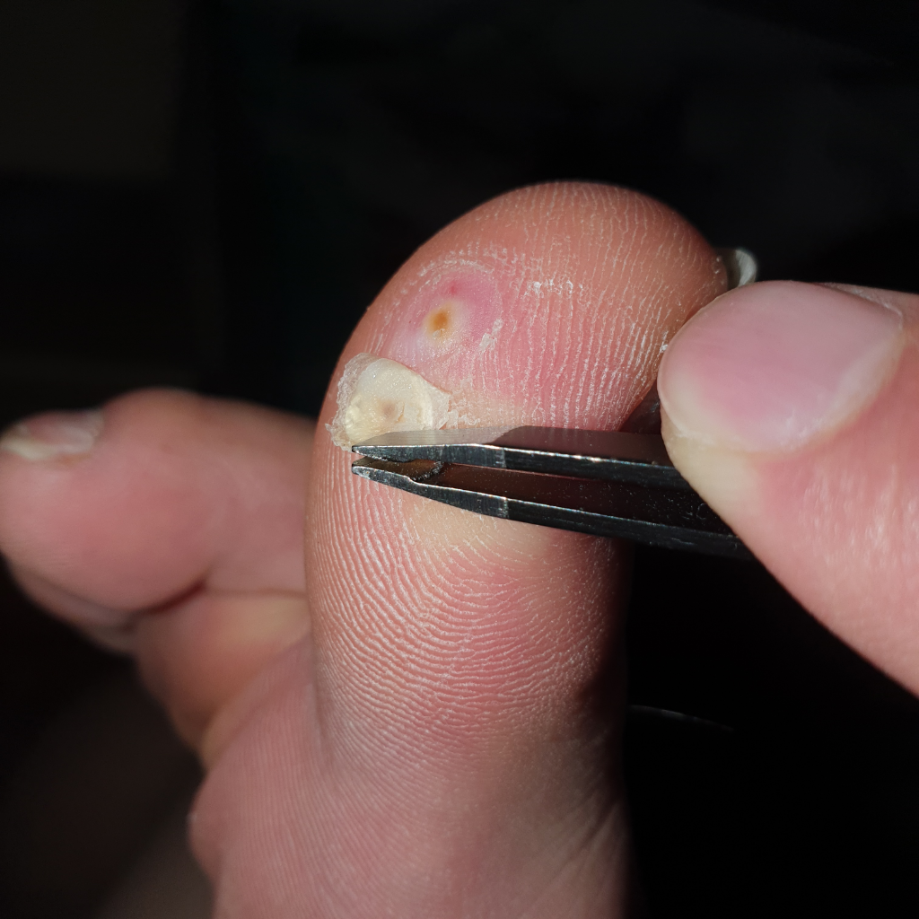 해당 병변도 제거를 해야 치료가 종결됩니다. 하지만 가정에서의 제거는 출혈, 감염의 위험이 있기 때문에
