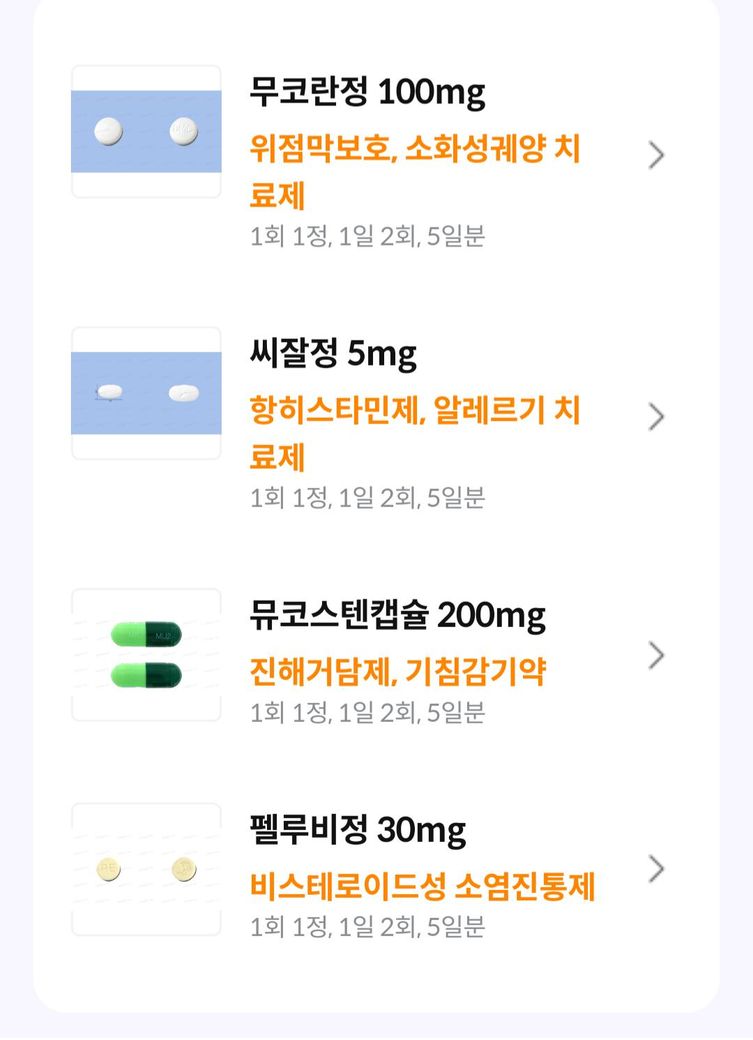 위 처방약은 일반적인 감기약 조합으로 보입니다.
