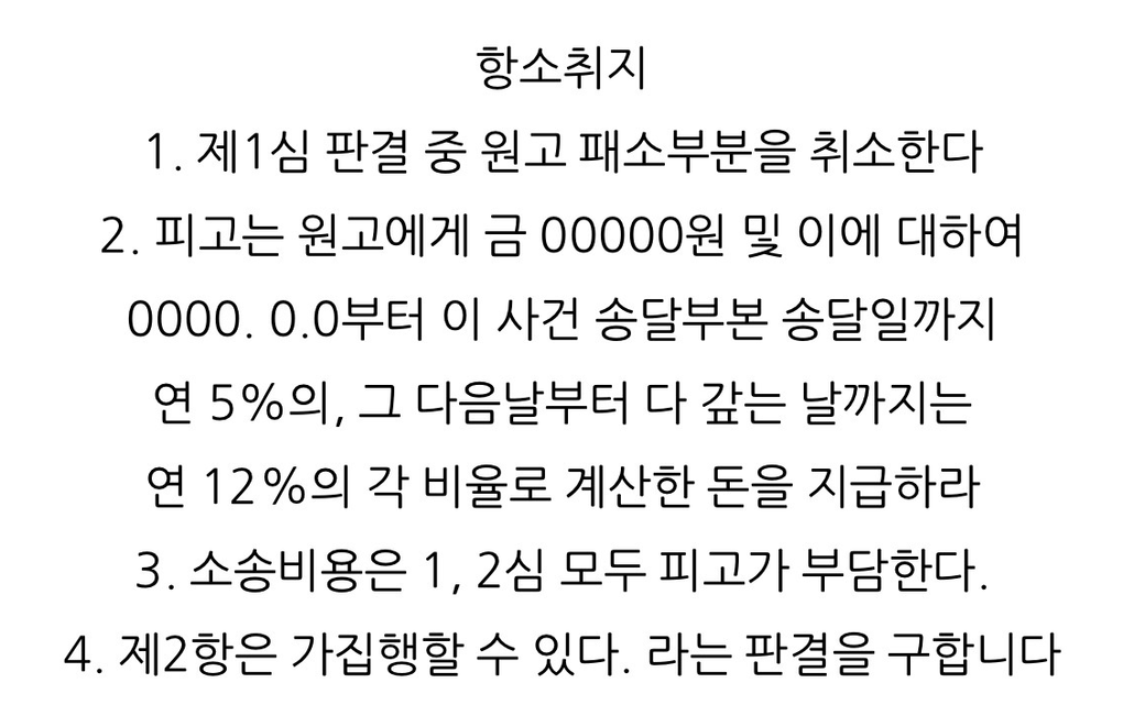 그리고 4번에 제2항은 가집행 할수 있다.라는 판결을 구합니다.